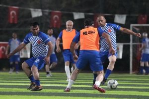 180 muhtarın katıldığı turnuvada ilk müsabakada, Karataş ve Çukurova İlçe muhtarlarının oluşturduğu takımlar karşılaştı.