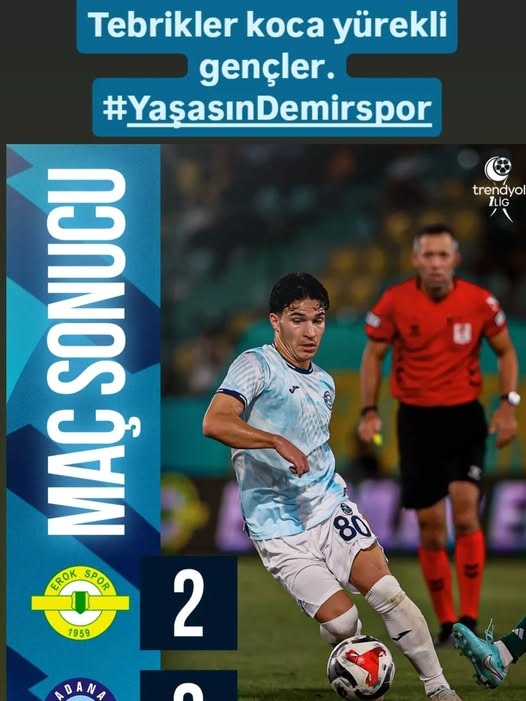 Adana Demirspor: Deniz Dönmezer, Kadir Karayiğit, Ali Fidan, Ali Arda Yıldız, Osman Kaynak, Caner Kaban, Sefa Gülay (Kürşat Türkeş Küçük dk. 75), Ahmet Yılmaz (Halil Eray Aktaş dk. 75), Salih Kavrazlı, Enes Erol, Ozan Demirbağ (Muhammed Ergen dk. 86)