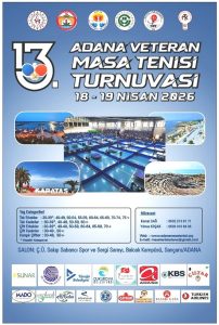 13.Veteranlar Masa Tenisi Turnuvası 18-19 Nisan 2026 tarihlerinde ÇİLTAR Adana Masa Tenisi Spor Kulübü tarafından Gençlik ve Spor İl Müdürlüğü ile Çukurova Üniversitesi’nin katkısıyla Çukurova Üniversitesi Sakıp Sabancı Spor ve Sergi Sarayı’nda 41 masada yapılacak.