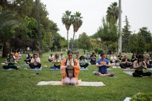 Atatürk Parkı’nda sabahın erken saatlerinde gerçekleştirilen Yoga pratiğinde; zihni sakinleştirerek başlayan çalışma, esneme hareketlerinin ardından Yoga pratiğiyle devam ediyor. Sıfırdan başlayarak her seviyeye uygun olacak şekilde yapılan çalışmalar, nefes egzersizleri, meditasyon ve Yoga pratiği şeklinde devam ediyor.