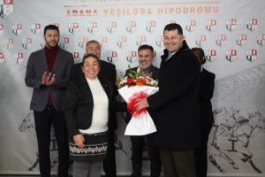 AK Parti Adana İl Başkanı Tamer Dağlı, günün anısına kazanan atın sahibi adına Mithat Katı’ya çiçek takdim etti.