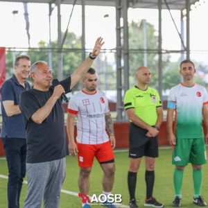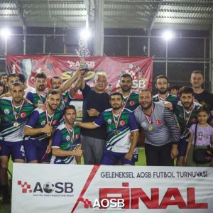 Bölge sanayicileri ile çalışanlarının buluşmasını, kaynaşmasını ve motivasyonlarını sağlamak amacıyla düzenlenen turnuvanın Simeranya Halı Sahası’nda gerçekleştirilen finalini AOSB Yönetim Kurulu Başkanı Bekir Sütcü de izleyerek, oyunculara destek oldu.