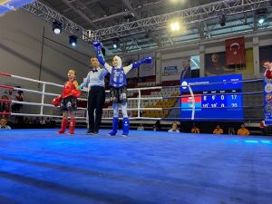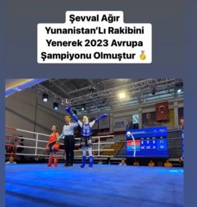 21 Mart’ta Ankara’da başlayan MUAYTHAİ Avrupa şampiyonasında ringe çıkan Ceyhanlı Şevval AĞIR (11) kendi yaş ve kategorisinde Yunanlı rakibini yenerek birinci olurken,