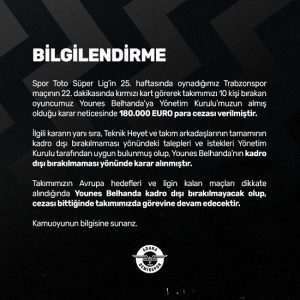 Süper Lig ekiplerinden Adana Demirspor, Trabzonspor maçında kırmızı kart görüp takımı 10 kişi bırakan Younes Belhanda ile ilgili bir açıklama yaptı.