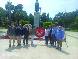 Türkiye Gazeteciler Federasyonu Başkanvekili ve Çukurova Gazeteciler Cemiyeti Başkanı Cafer Esendemir ile Başkan Yardımcıları Hüseyin Arat ve A.Engin Kanber, Genel Sekreter Yasemin Atasoy, Genel Sekreter Yardımcısı Mustafa Özke, Mali Sekreter Süreyya Aksoy, Yönetim Kurulu Üyeleri Çetin Ulucan ve Mutlu Mete Atatürk Anıtı’na çelenk koydu.