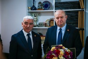 Konuşmaların ardından eski Başkan Cafer Esendemir, şık bir Atatürk portresini Başkan Kurtul Çakın’a hediye ederken, Çakın başkan da Cafer Esendemir’e kır çiçeklerinden oluşan bir buket takdim etti.