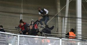 Adana Demirspor ile Samsunspor arasında oynanan karşılaşmada istenmeyen olaylar da yaşandı.. Mücadelenin ilk yarısında mavi-lacivertli taraftarlar, Karadeniz temsilcisini desteklemek için Adana’ya gelen taraftarların olduğu bölüme girip, çirkin saldırıda bulundu!.