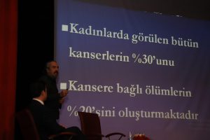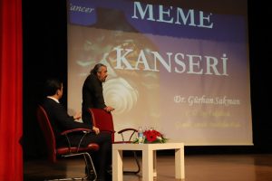 Prof. Dr. Gürhan Sakman (Genel Cerrahi Uzmanı/ Meme ve Endokrin Cerrahi) ve Prof. Dr. Sinan Yavuz (İç Hastalıkları, Tıbbi ‘Medikal’ Onkoloji) Meme Kanseri ile ilgili bilgiler vererek, “, “Kanser nedir, kanserin ön belirtileri neler, risk faktörleri neler, bu durumda neler yapmalıyız, kendi kendine muayenenin önemi nedir, nelere dikkat etmeliyiz” şeklinde konuşma yaptılar.