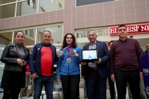 Denizli’de yapılan Kulüpler arası Halk Oyunları Türkiye şampiyonasında üçüncü olan Seyhan Belediyespor Kulübü Halk Oyunları Yıldız takımı ve Romanya’da gerçekleşen Gençler U-23 Avrupa Şampiyonası’nda ikincilik, Büyükler kategorisinde Avrupa üçüncülüğü, Ankara’da gerçekleşen şampiyonada Büyükler Türkiye birinciliği ve Belediyeler arası Türkiye şampiyonu olma başarısı gösteren Seyhan Belediyespor Kulübü sporcusu milli halter Sara Yenigün Seyhan Belediye Başkanı Akif Kemal Akay’ı ziyaret edip desteklerinden dolayı teşekkür edip kupa ve madalyalarını armağan ettiler.