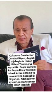 Adana’mızın Medya, İş ve Siyaset dünyasının önemli isimlerinden Hakan Bülent Yardımcı’nın geçirdiği kalp krizi sonucu hayatını kaybettiğini büyük bir üzüntüyle öğrendim. Merhuma Allah’tan rahmet, Yardımcı Ailesine, yakınlarına ve sevenlerine başsağlığı dilerim. Mekanı cennet, Ruhu şad olsun
