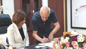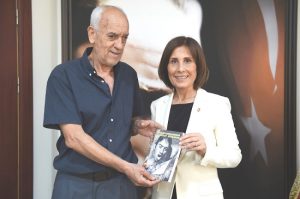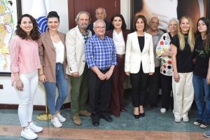 1972 Münih Olimpiyatları’nda, 3 kez Akdeniz Oyunları’nda, 1977 Avrupa Şampiyonası’nda, 1973 Dünya Şampiyonası’nda ülkemizi temsil eden, Balkanlar’da “Kürsüye çıkan ilk Türk yüzücüsü” unvanını alan efsane yüzücü Faruk Morkal ziyarette Başkan Av. Oya Tekin’e kendi yazdığı “Sulama kanallarından, olimpiyat oyunlarına” isimli kitabını imzalayarak armağan etti.