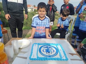Çukurova Demirspor Kulübü altyapısında forma giyen Miraç Ergün için Kulüp Başkanı Kamil Aslan ve arkadaşları tarafından sürpriz bir doğum günü partisi gerçekleşti. Alkışlar eşliğinde önce mumu üfleyen ardından da pastayı kesen Miraç’ın mutluluğu gözlerinden okunmaktaydı. Bizde Miraç kardeşimizin doğum gününü kutluyor nice yaşlar diliyoruz.