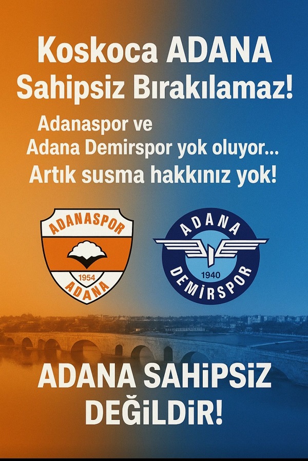 Bu şehrin kalbi olan ADANASPOR ve ADANA DEMİRSPOR yok olma sürecine sürüklenirken; şehrin mülkî amirleri, milletvekilleri, belediye başkanları ve sivil toplum örgütleri ne yazık ki sessiz kalıyor.