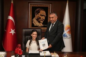 23 Nisan Ulusal Egemenlik ve Çocuk Bayramı nedeniyle Adana Büyükşehir Belediye Başkan Vekili Güngör Geçer’in makamına Seyhan Öğretmen Ayfer Doğruol İlkokulu 4/E sınıfı öğrencisi Zeynep Demir oturdu.
