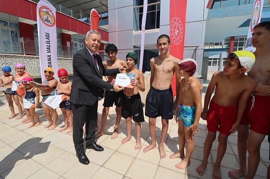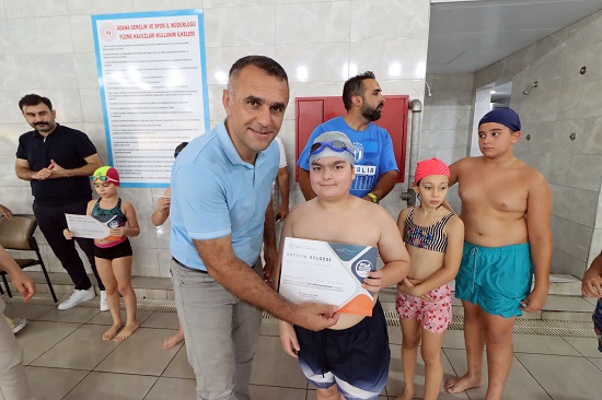 Gençlik ve Spor Bakanlığı’nın ülke genelinde yürüttüğü “Yüzme Bilmeyen Kalmasın” projesi kapsamında, Adana’da yüzme kurslarını başarıyla tamamlayan öğrencilere katılım belgeleri verildi.