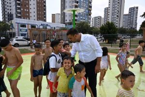 Yüzüncü yıl Mahallesi’nde yapımı tamamlanan ve hizmete açılan su oyun parkını ziyaret eden Çukurova Belediye Başkanı Emrah Kozay, çocuklar ve aileleriyle bir araya gelerek çocukların coşkusuna ortak oldu. Başkan Kozay, “Çocuklarımızın yüzü güldükçe biz daha çok çalışıyoruz. Onlar gülüyorsa her şey yolunda demektir” dedi.