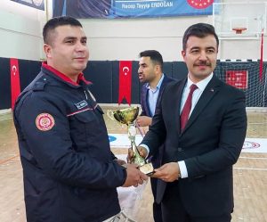 Mücadelesi ve heyecanı yüksek geçen maçlarda hedefine ulaşan Adana Büyükşehir Belediyesi Pozantı İtfaiye Grup Amirliği Voleybol Takım Kaptanı Hüseyin Pehlivan’a Pozantı Kaymakamı Hüseyin Aydın, kupa ve plaket verdi, turnuvaya katılan takımları tebrik etti.