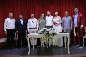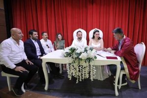Düğün töreni öncesi Murat Göğebakan Kültür Merkezi’nde gerçekleşen nikâh merasimine ise Ceyhan Kent Konseyi Başkanı Muhammed İslam Bünül, Halk Eğitim Merkezi Müdürü Ata Akgün, Arslan Medya Yönetim Kurulu Başkanı Yalçın Arslan, Özge Öz şahitlik ederken aile cüzdanını Adana Büyükşehir Belediye Meclis üyesi İlker Önük gelin hanıma takdim etti.