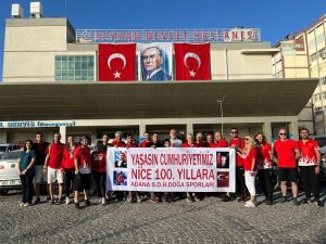 Seyhan Devlet Hastanesi Doğa Sporları Kulübüne üye sağlık çalışanları 100. Yıl coşkusuna katılarak hastane önünde bir dizi etkinlik gerçekleştirdi. Kulüp adına açıklamalarda bulunan Dr. Akın Vural, “100. Yılı görme ve kutlama şerefine eriştiğimiz için mutluyuz. Yaşasın Cumhuriyet. Atamızın bizlere emanet ettiği bu kutsal emaneti sonsuza kadar yaşatacağız. Atamıza minnettarız’ dedi.