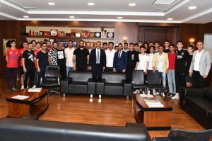 Adana 1. Amatör Kümede şampiyon olarak Süper Amatör Lige çıkan Çukurova Demirspor, Cihangir FK ve Kuzey Adanaspor yönetici ve sporcuları Başkan Soner Çetin’e ziyarette bulundu.