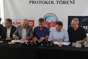 Türkiye Spor Yazarları Derneği Adana Şubesi yeni idari binasına kavuşuyor…. Bir süre önce çıkan yangının ardından büyük hasar gören TSYD Adana Şubesi Nihat Geven Tesisleri için DAİMFED öncülüğünde Karay Beton ve Yıldırım Uluğ işbirliğiyle yapılacak bina için protokol imzalandı. TSYD Lokali’nde yapılan imza törenine Gençlik Hizmetleri ve Spor İl Müdürü Muzaffer Çintımar, ASKF Başkanı Ahmet Bozan, TSYD Adana Şube Başkanı Kerim Hoşfikirer, Asbaşkan Engin Kanber, yönetim kurulu üyesi Doğan Gülbasar ve Hakan Köker ile TSYD üyelerinin yanı sıra DAİMFED Başkanı Mustafa Karslıoğlu, Başkanvekili Faruk Bozkurt, Başkan Yardımcısı Sayım Azmaz,Genel Sekreter Enes Yılmaz, Teknik Müşavir Prof. Dr. Ahmet Beycioğlu, Mali işler Başkanı Nurullah Hamidi, Hukuk Müşaviri Selim Aslan, AKAMDER Genel Sekreteri Mehmet Ali İnan, Teknik Müşavir Mimar Rıfat Bektaş’ın yanı sıra Karay Beton CEO’SU Soner Uluğ katıldı.
