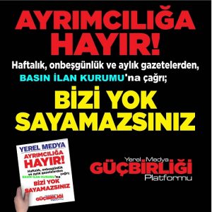 Resmi İlan Almayan ancak sadece Reklam ile yaşamını devam ettiren Günlük Gazeteler dışında kalan yayın organlarının yer aldığı Yerel Medya Güçbirliği Platformu’nun açıklaması şöyle:
