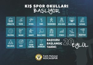 Futbol, basketbol, voleybol, satranç, masa tenisi, pilates, taekwondo, dart, güreş, yüzme, jimnastik, tenis, karate, muay thai, kick boks, wushu, wellness, fitness, floor curling ve halk oyunlarından oluşan 20 farklı branşta verilecek kurslarda alanında uzman eğitmenler görev alacak.